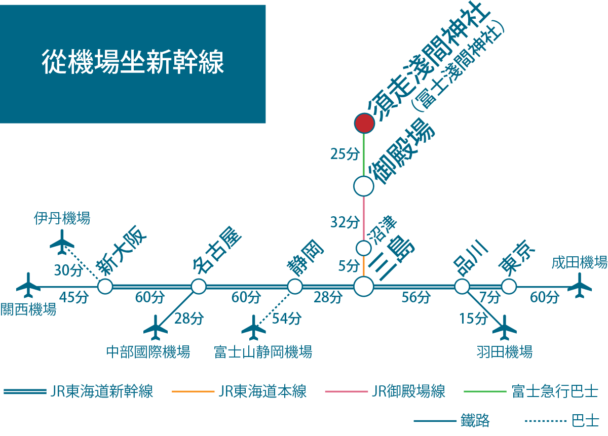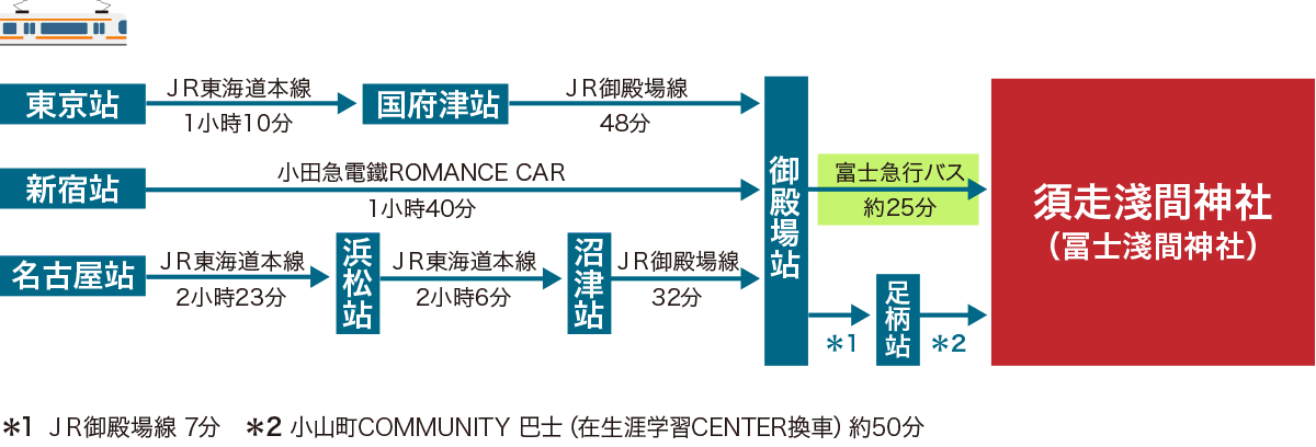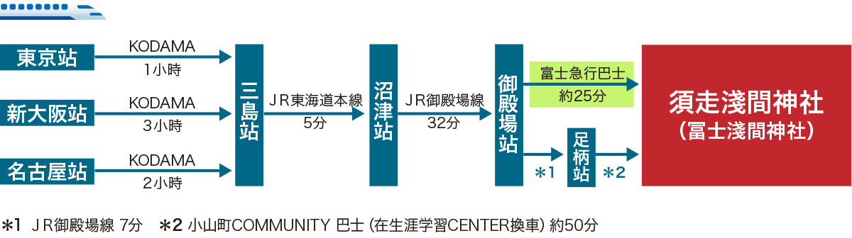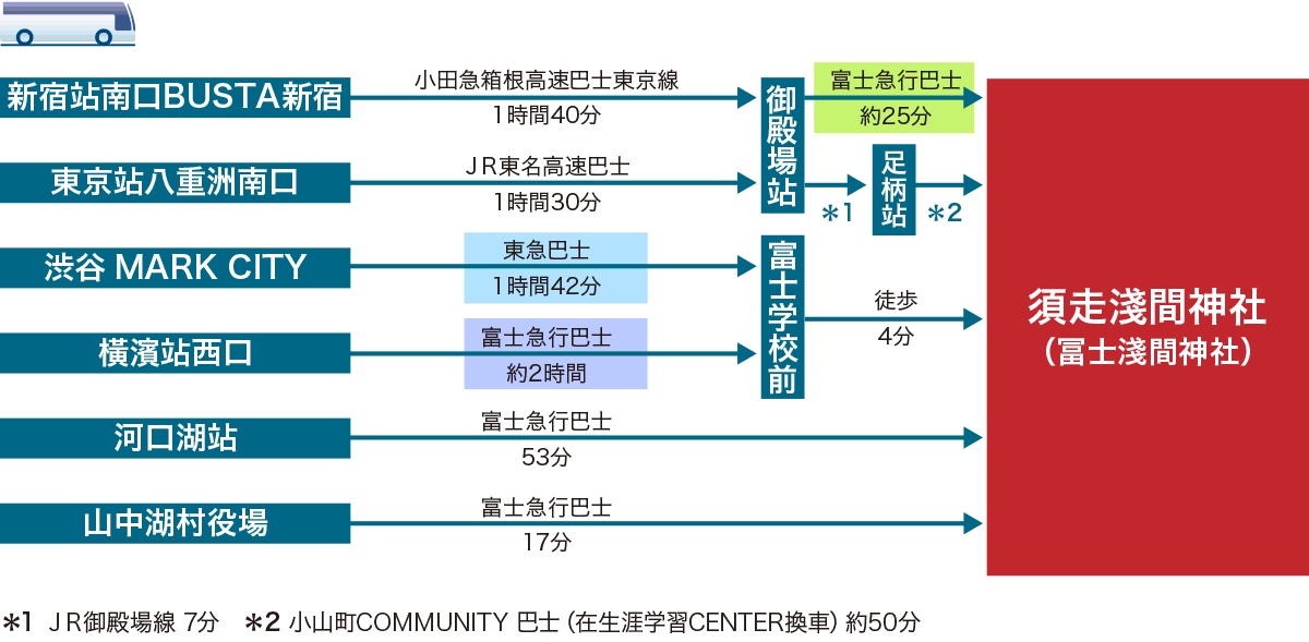 | 往「須走神社」 | 6:50/7:40/8:10〜20:00/20:30/21:40 8:00〜20:00各時有10分和40分。 |